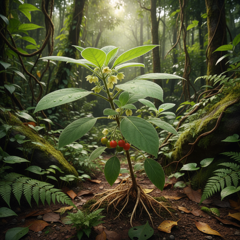 Ashwagandha prirodzene rastie najmä v Indii, Nepále a na Srí Lanke. Patrí do čeľade ľuľkovitých (ako napríklad paradajka či paprika).